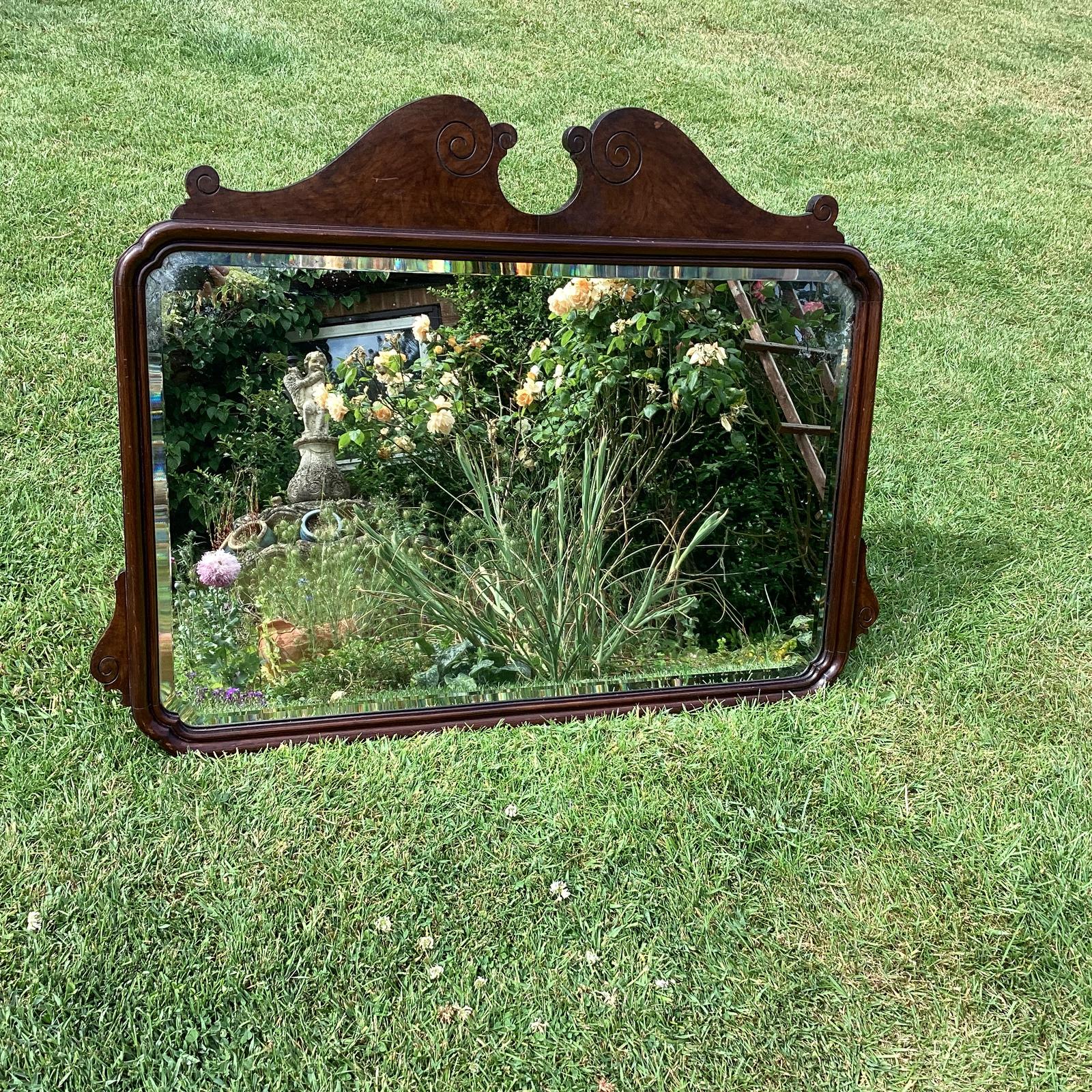Victorian Walnut Wall Mirror Original Bevel Glass