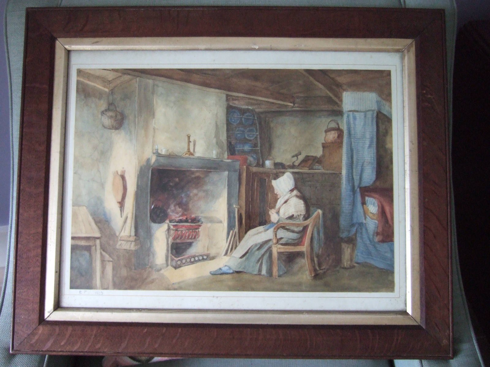 Victorian Watercolour of a Cottage Interior 1873 Signed "E F"