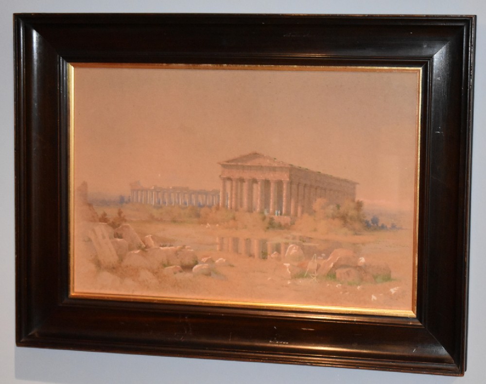 Victorian Watercolour of the Temple of Poseidon, Paestum, Italy