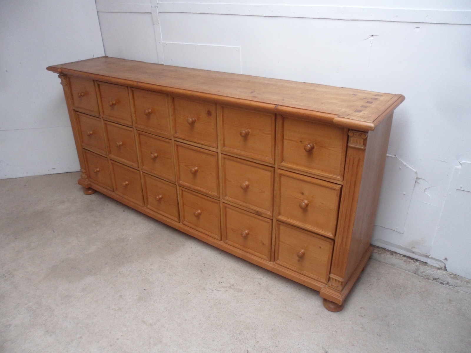 Victorian Waxed Antique Pine 18 Drawer Chest of Drawers / Shop Fitting