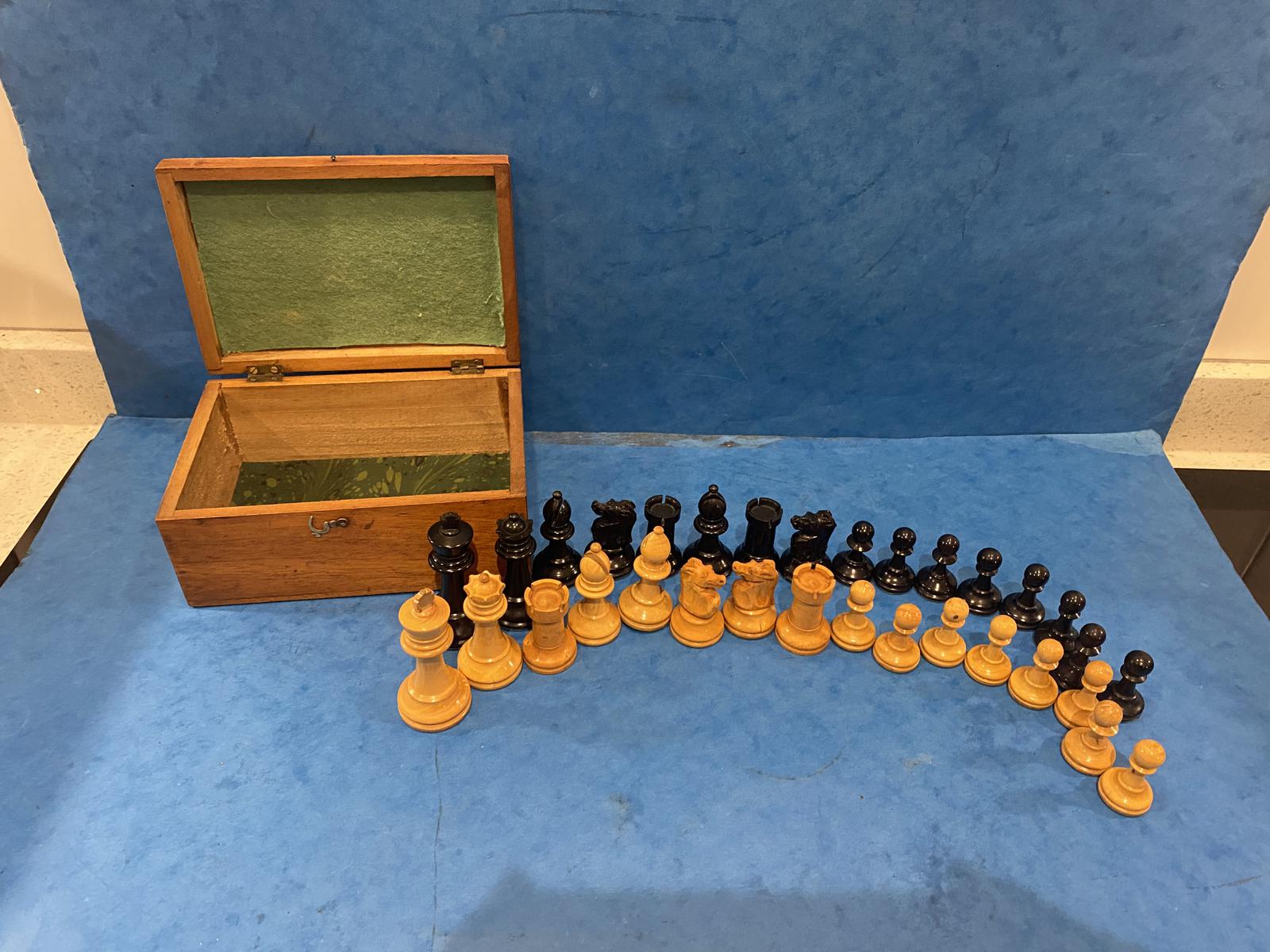 Victorian Weighted Ebony And Boxwood Staunton Chess Set