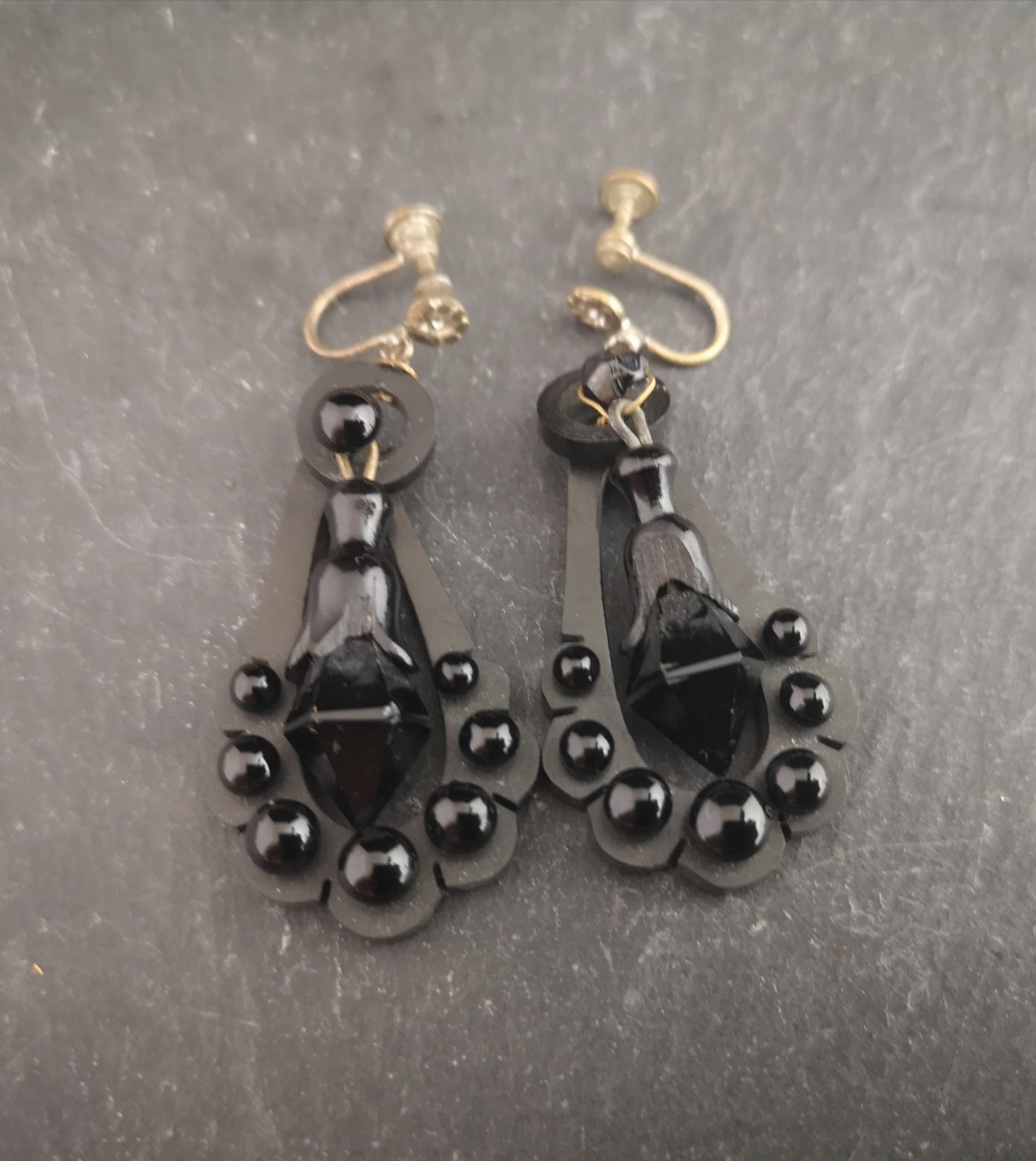 Victorian Whitby Jet Dangle Earrings