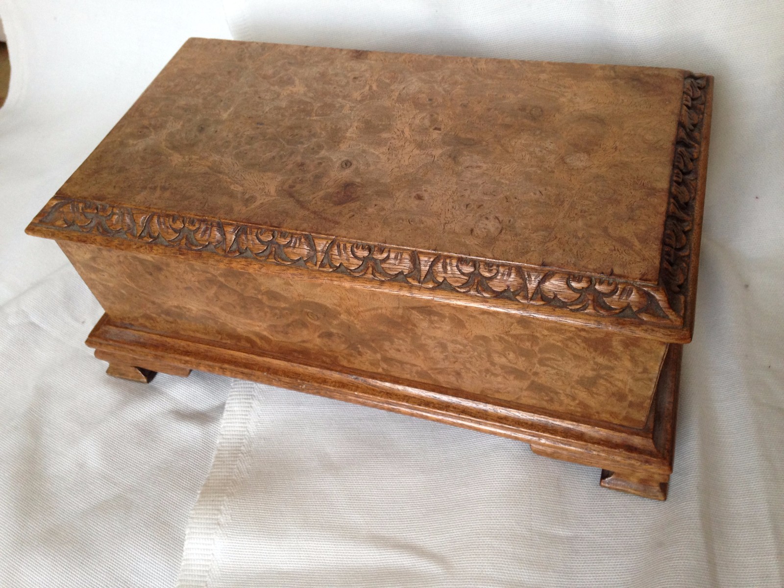 Victorian Wooden Jewelry / Cigar Box Decorated by Burled Walnut (Free Shipping to Mainland UK)
