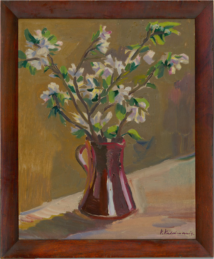 Vilis Valdmanis (1906-1980) - Signed and Framed Oil, Blossom in a Red Jug