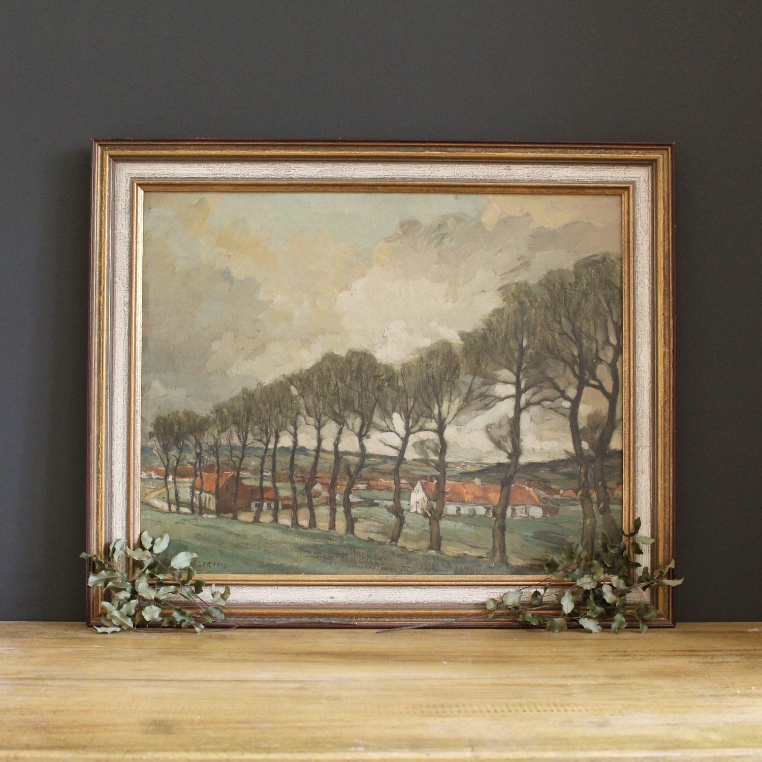 Village Approach, Mid-Century Continental Oil Painting, Impressionism