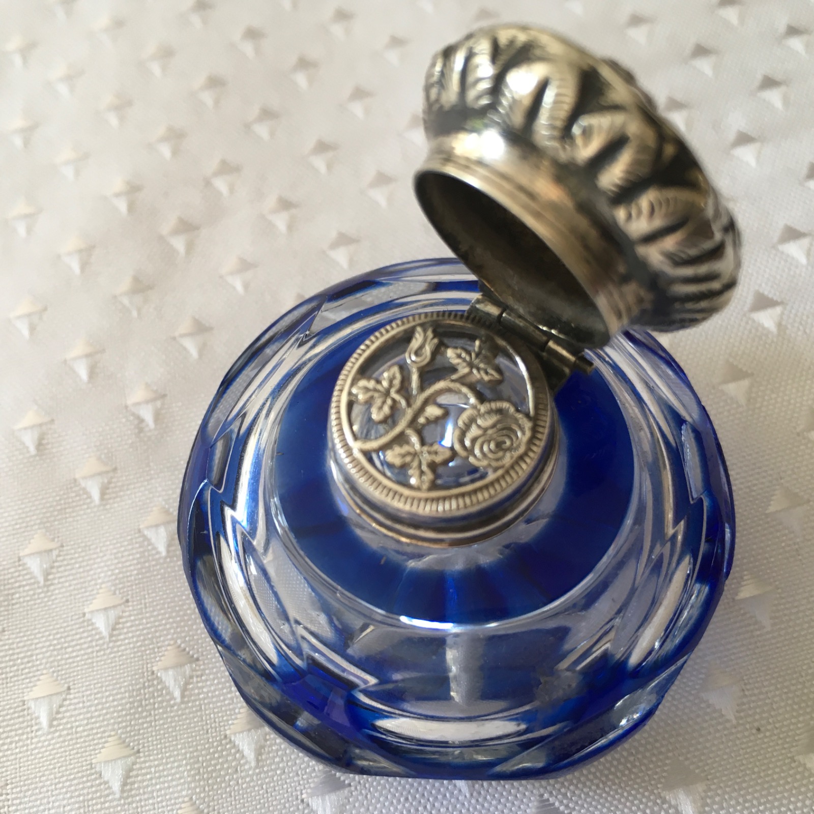 Vinaigrette - Blue Overlay Glass & Silver c.1870