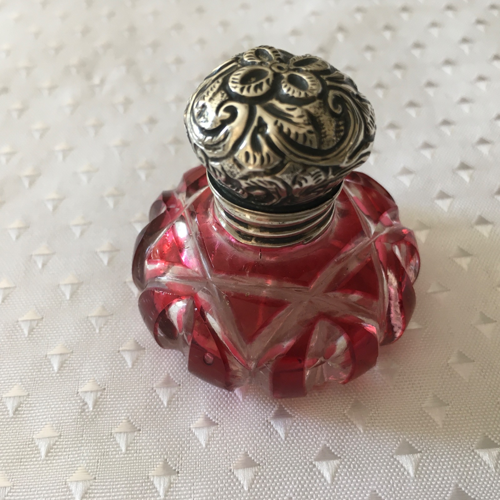 Vinaigrette - Victorian Cranberry Glass & Silver c.1870