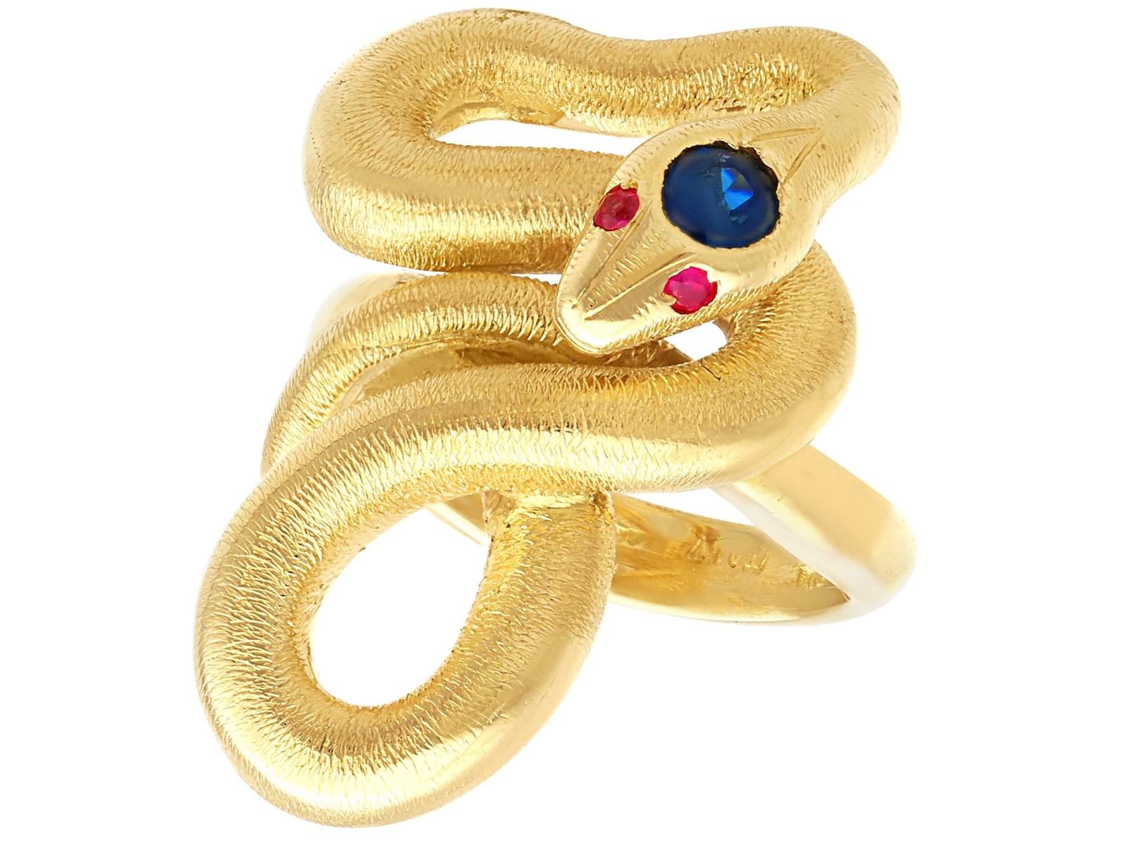 Vintage 0.13ct Sapphire & Ruby 18ct Yellow Gold Snake Ring 1950 (1 of 12)