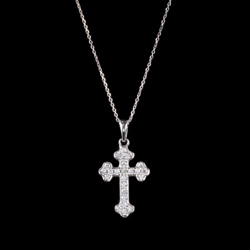 Vintage 0.50ct Diamond Cross Pendant & Chain 18ct White Gold