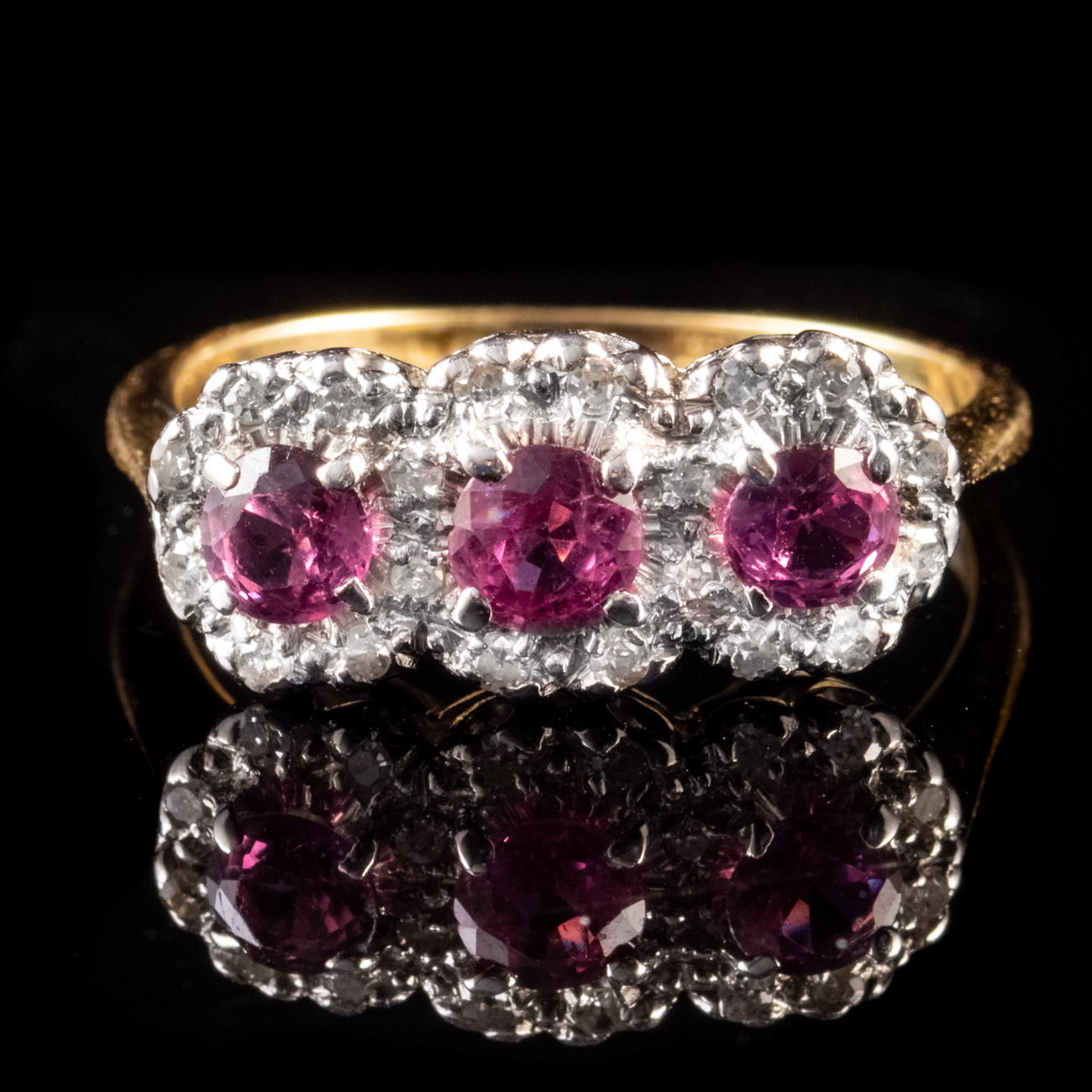 Vintage 0.80ct Ruby Diamond Trilogy Cluster Ring 18ct Gold Dated 1966