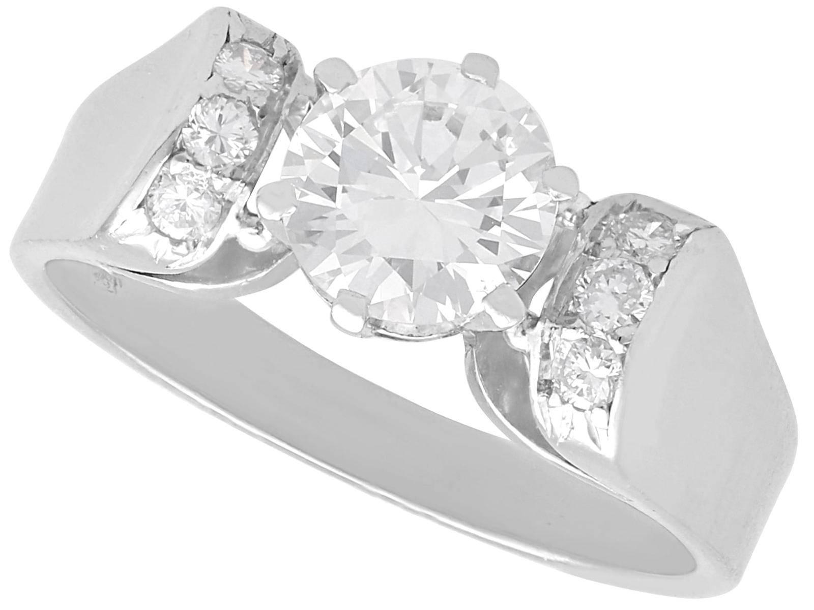 This stunning, fine and impressive vintage solitaire ring with accents has been crafted in platinum.