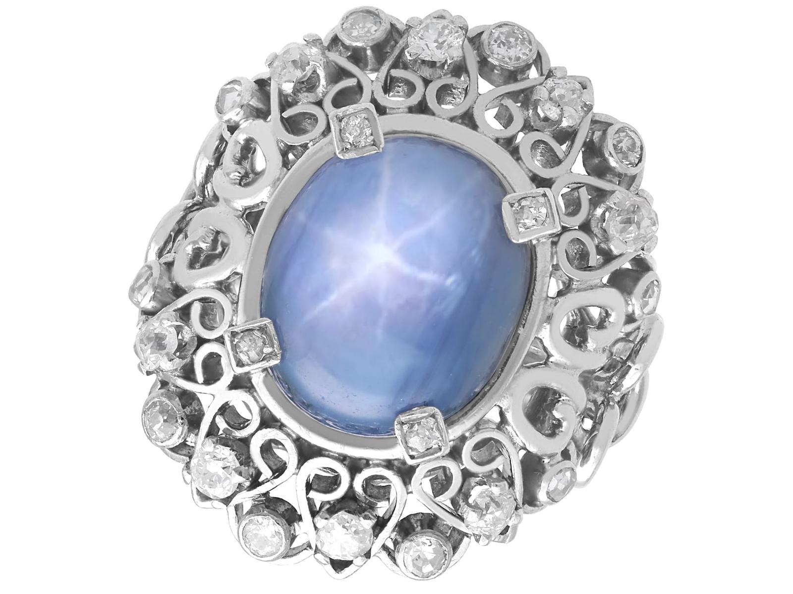 A stunning, fine and impressive vintage 11.51 carat star sapphire and 0.82 carat diamond, platinum ring; part of our sapphire rings collection.