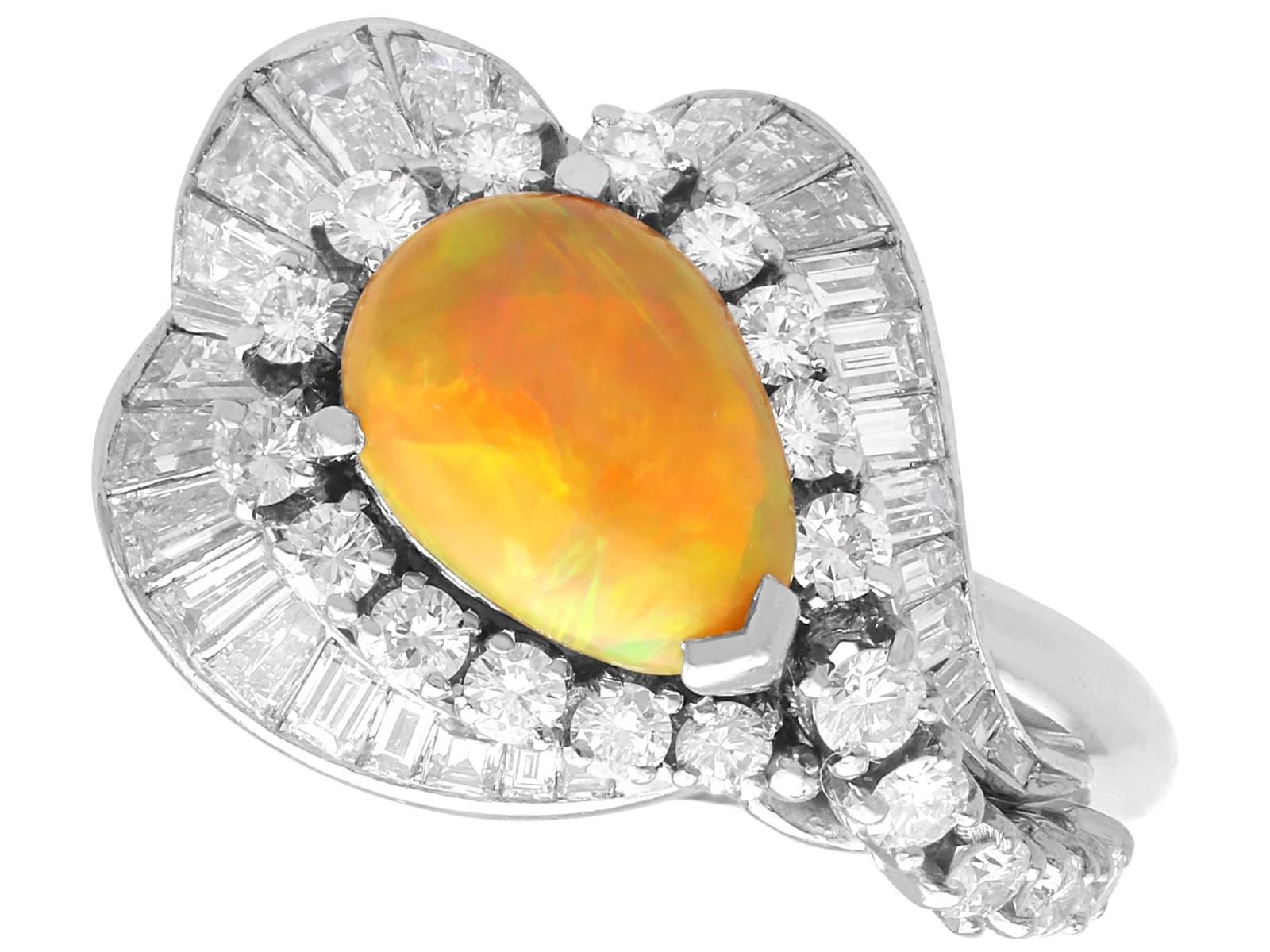 A stunning, fine and impressive vintage 1.48 carat opal and 3.03 carat diamond, platinum ring; part of our opal jewelry collection.