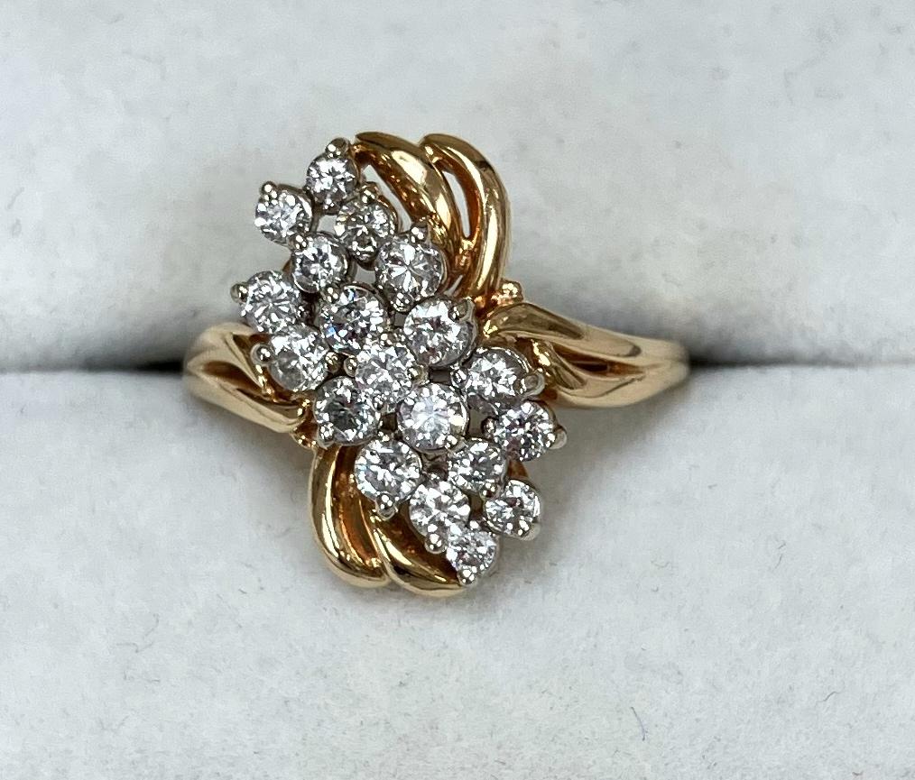 Vintage 14ct Gold Diamond Waterfall Ring - Size O 1/2