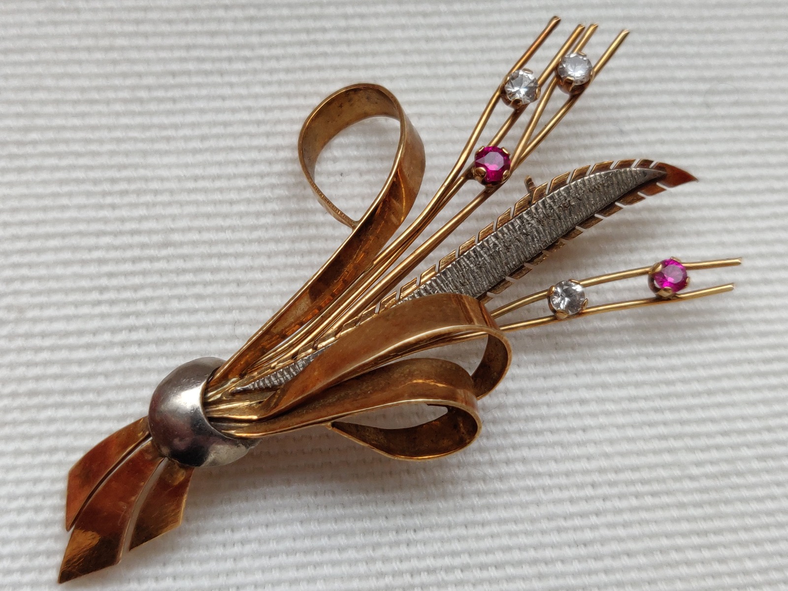 Vintage 14ct Rose Gold Floral Brooch with Ruby c.1940