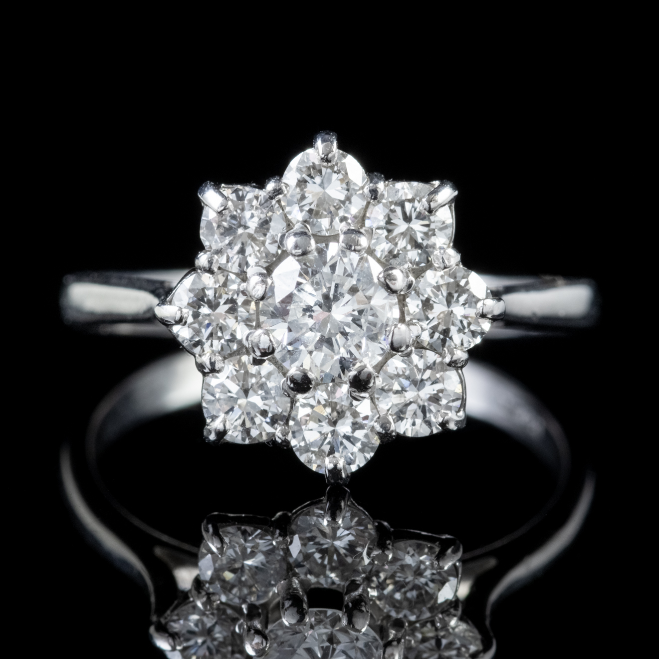 Vintage 1.50ct Diamond Cluster Ring 18ct White Gold c.1950