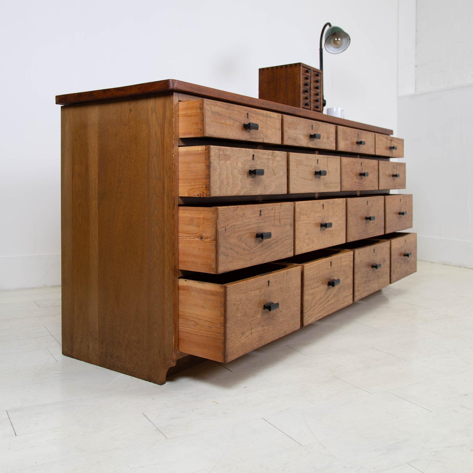 Vintage 16 Drawer Oak School Lab Bank of Drawers c.1940 (1 of 15)