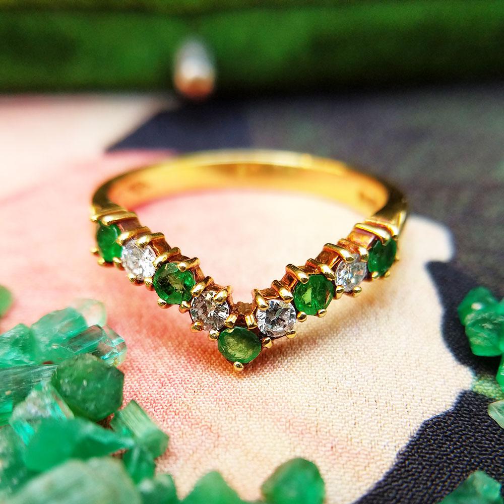 Vintage 18ct Gold Emerald & Diamond Wishbone Ring