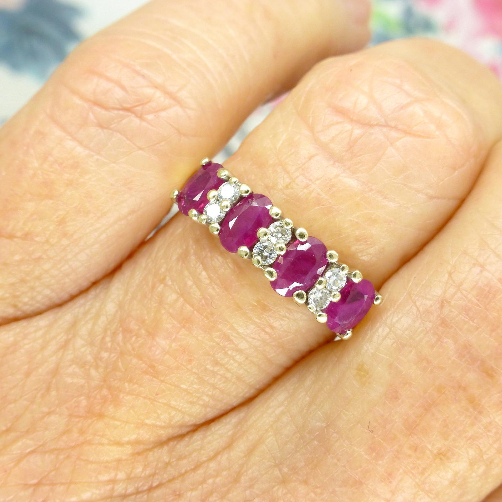 Vintage 18ct Gold Four Stone Ruby & Diamond Ring ~ Engagement ~ Anniversary