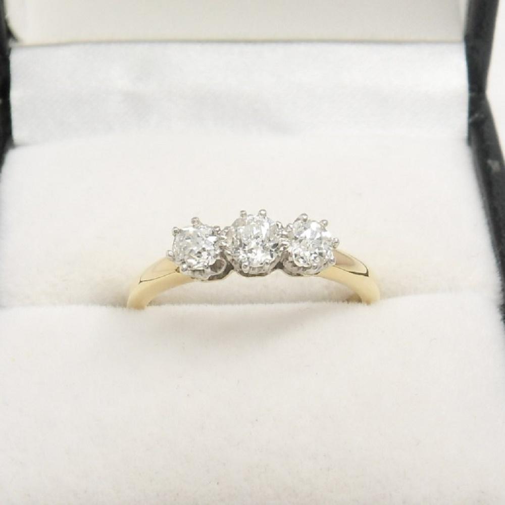 Vintage 18ct Gold Old Cut 3 Stone Diamond Ring. Size K