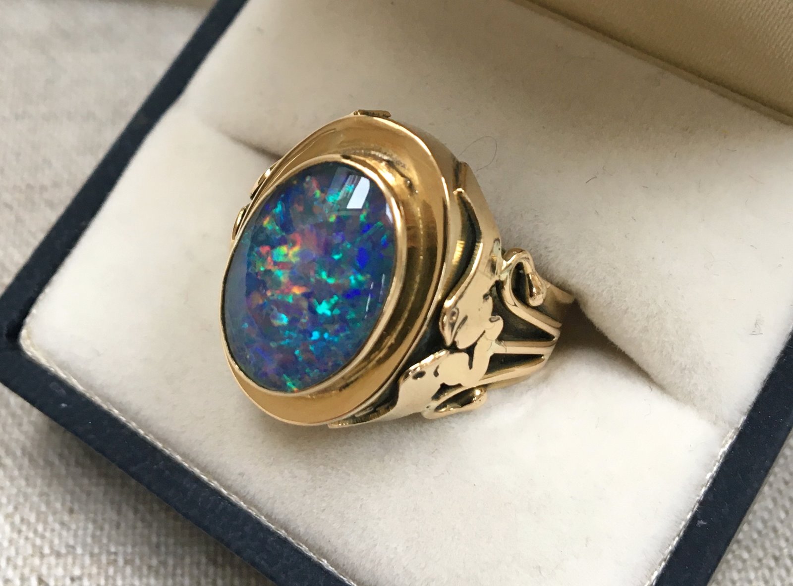 Vintage 18ct Gold Opal Doublet Ring, Size O 1/2