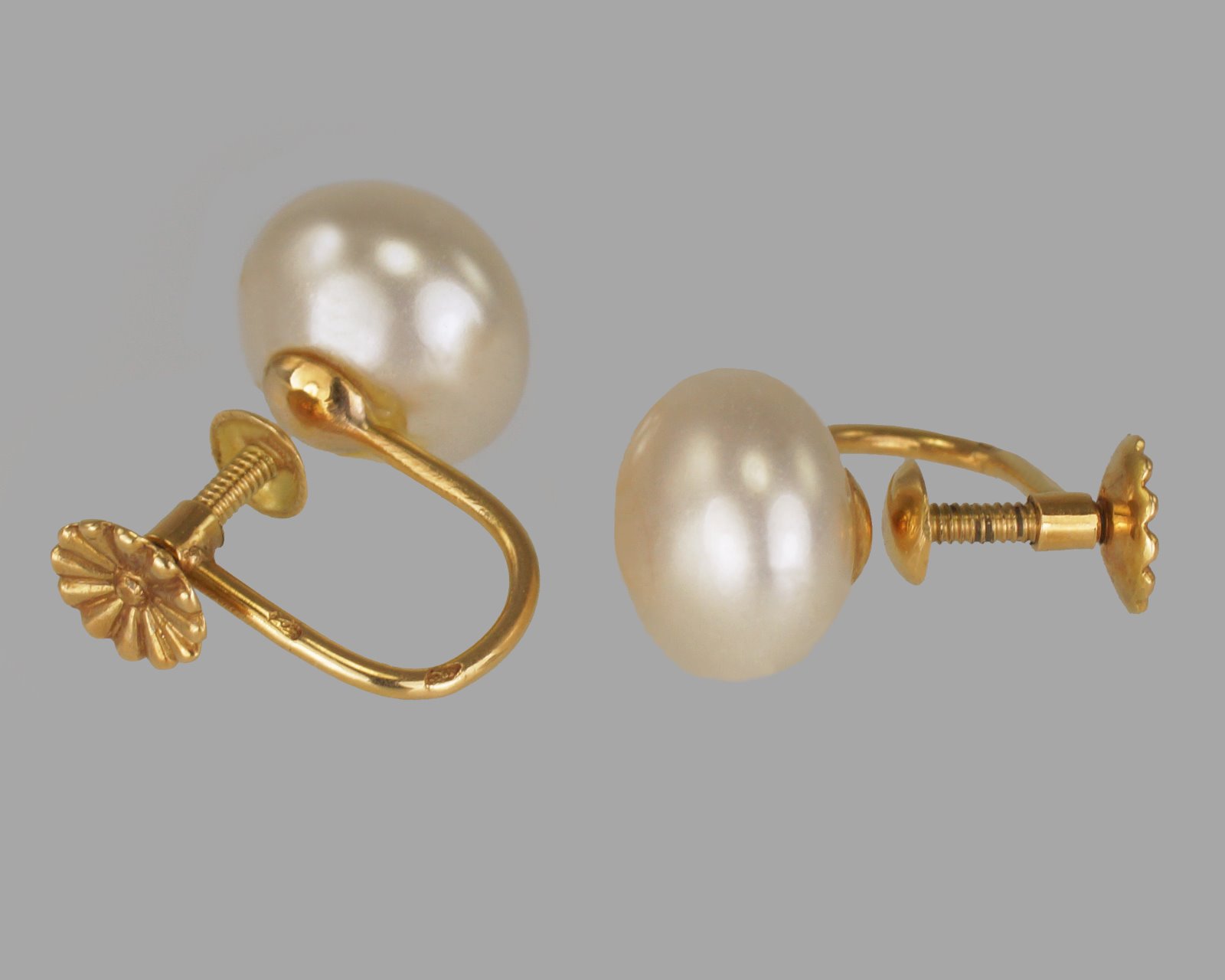 Vintage 18ct Gold Pearl Earrings with Tiffany & Co.Antique Leather Box