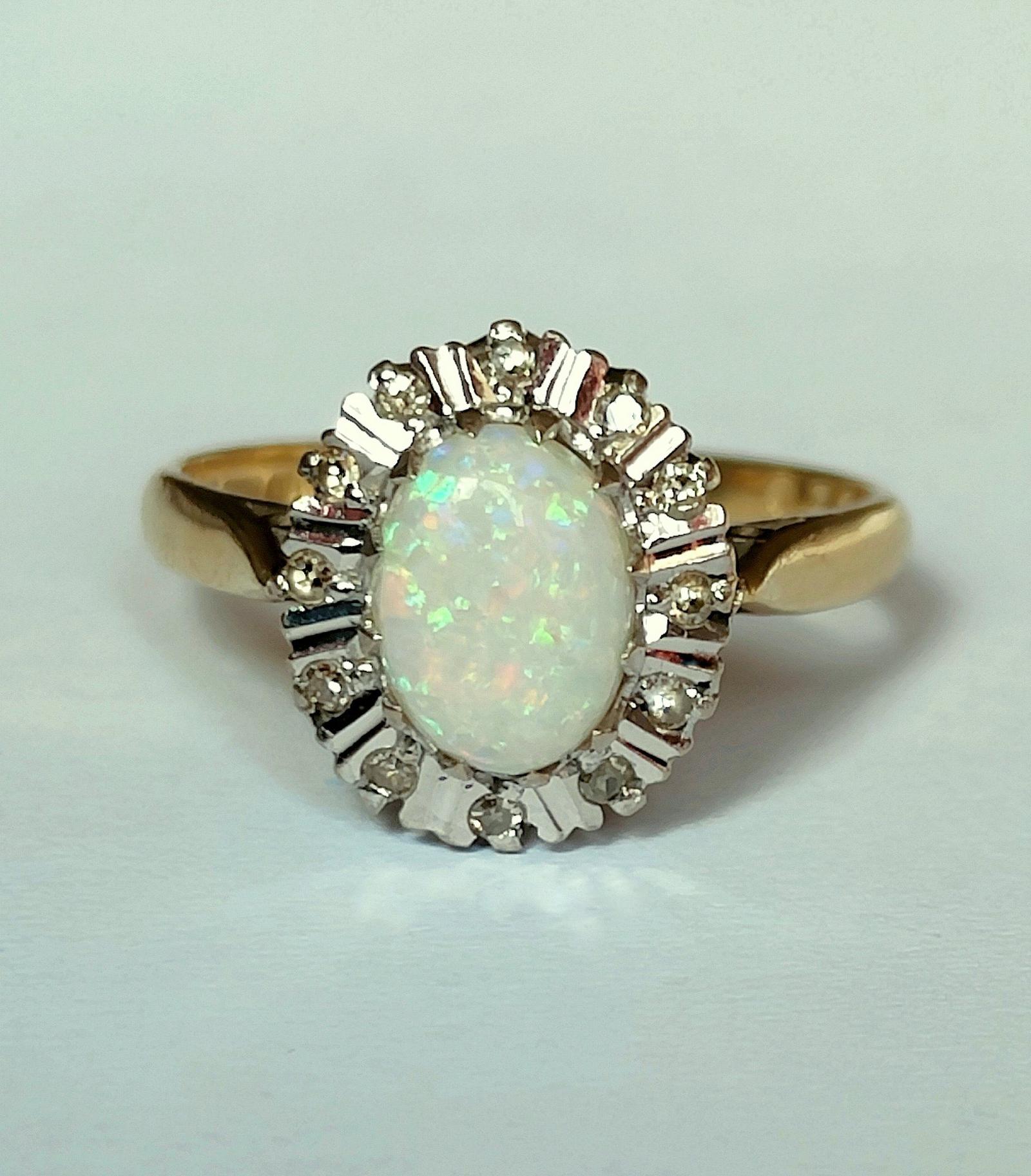 Vintage 18ct Gold Platinum Opal Diamond Cluster Ring (1 of 13)