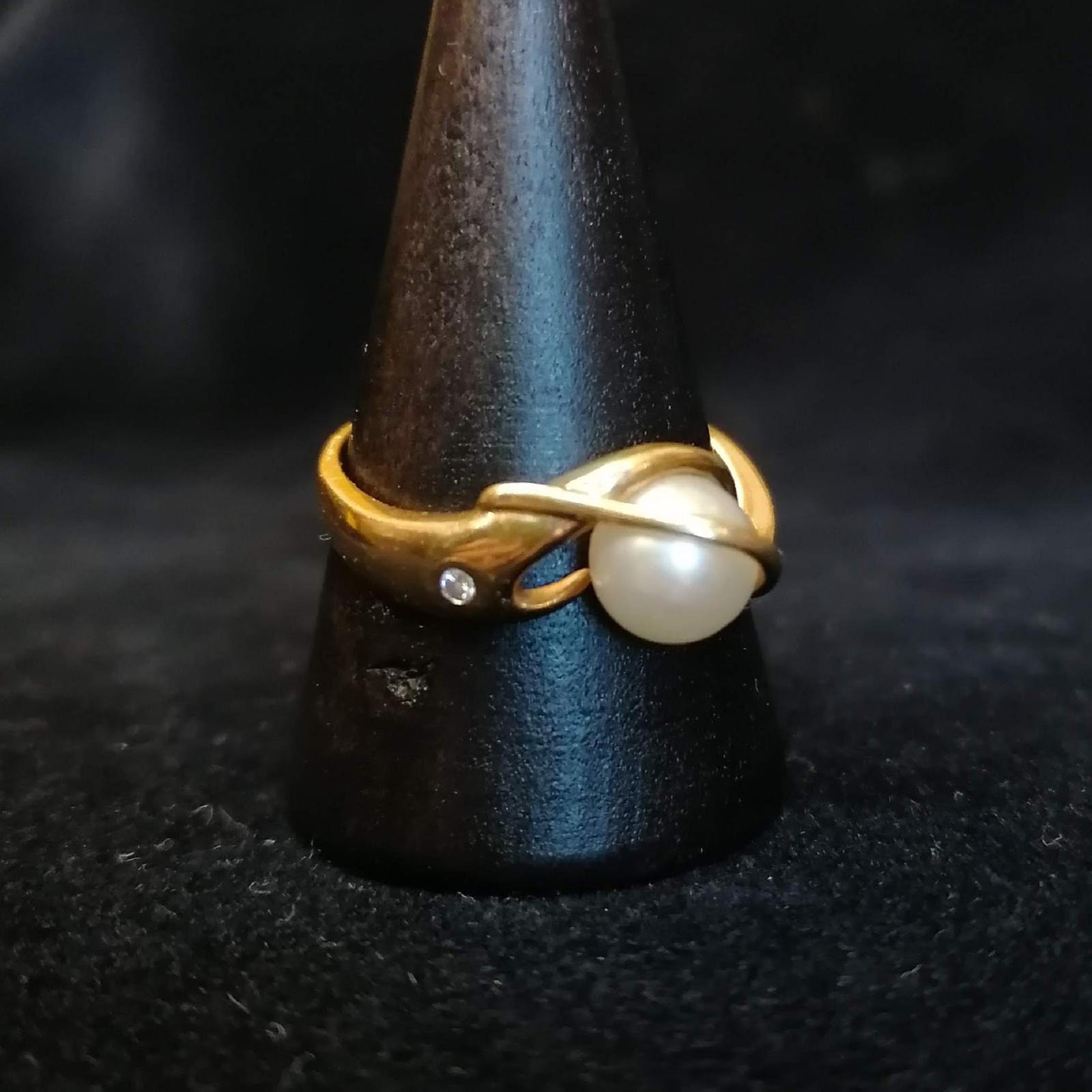 Vintage 18ct Gold Ring with Pearl & Diamond