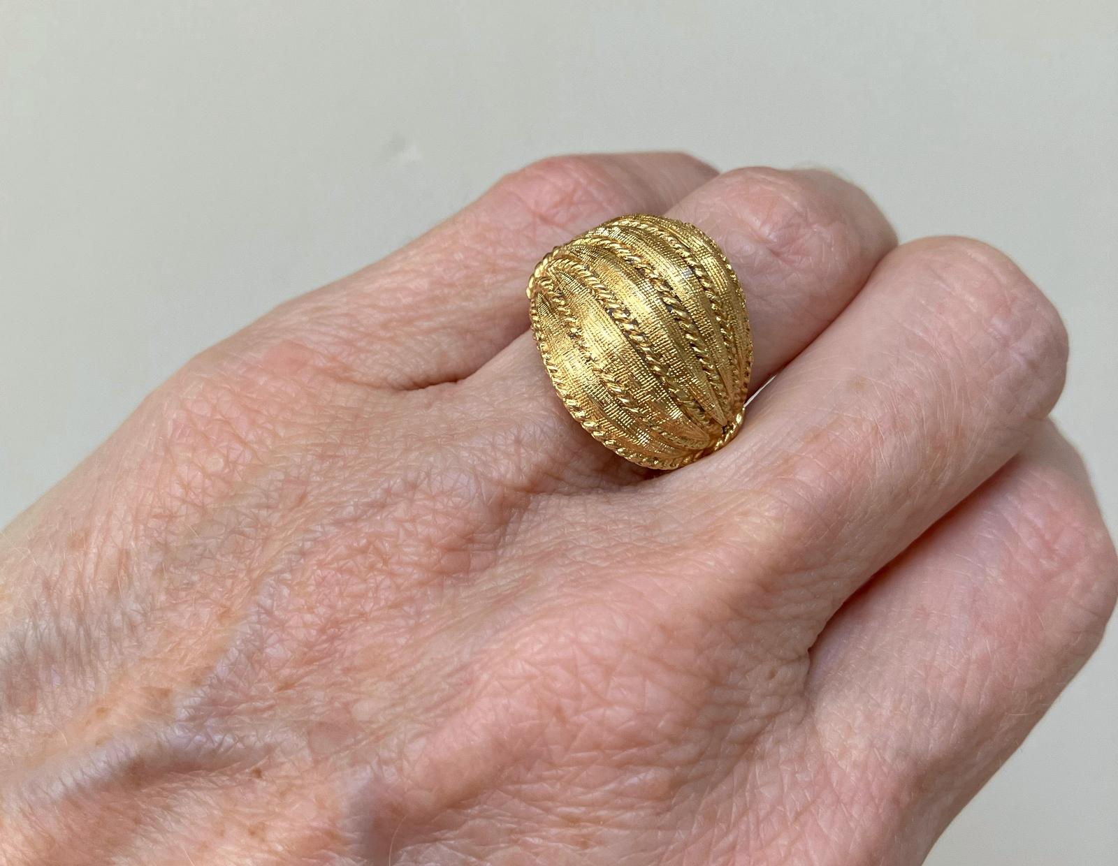 Vintage 18ct Gold Rope Twist Bombe Ring - Size K
