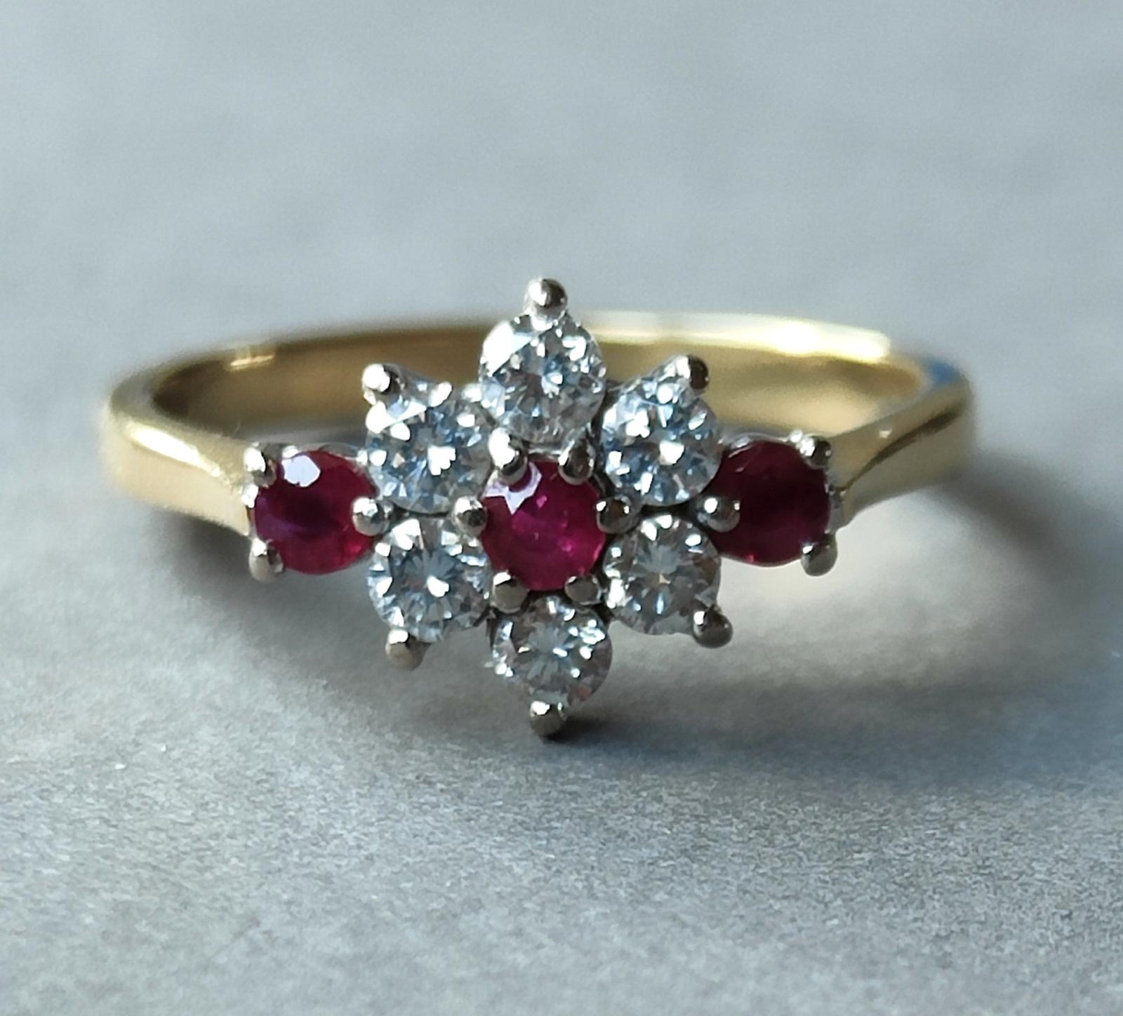 Vintage 18ct Gold Ruby Diamond Cluster Ring (1 of 9)