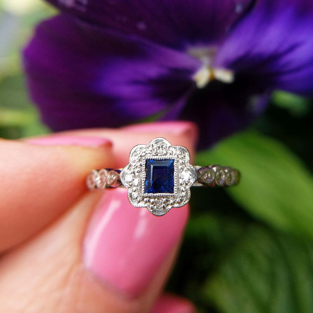 Vintage 18ct Gold Sapphire & Diamond Cluster Ring