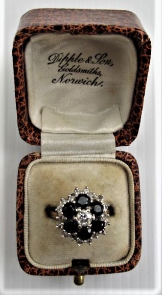 Vintage 18ct Gold, Sapphire & Diamond Cluster Ring, London 1980