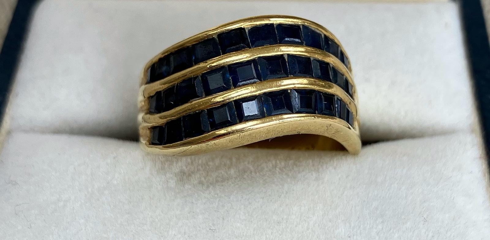 Vintage 18ct Gold Sapphire Triple Row Ring - Size N 1/2