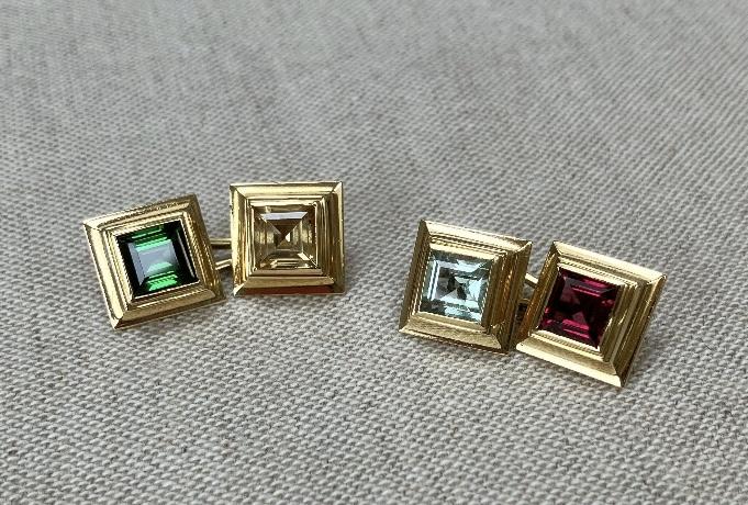 Vintage 18ct Gold Square Cut Multi Gem Stone Cufflinks