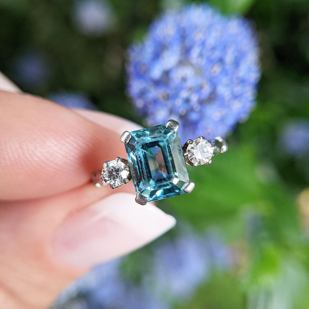 Vintage 18ct Gold Zircon & Diamond Three Stone Trilogy Ring