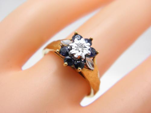 Vintage 18ct Heavy Gold Diamond Sapphire Cluster Ring Size N