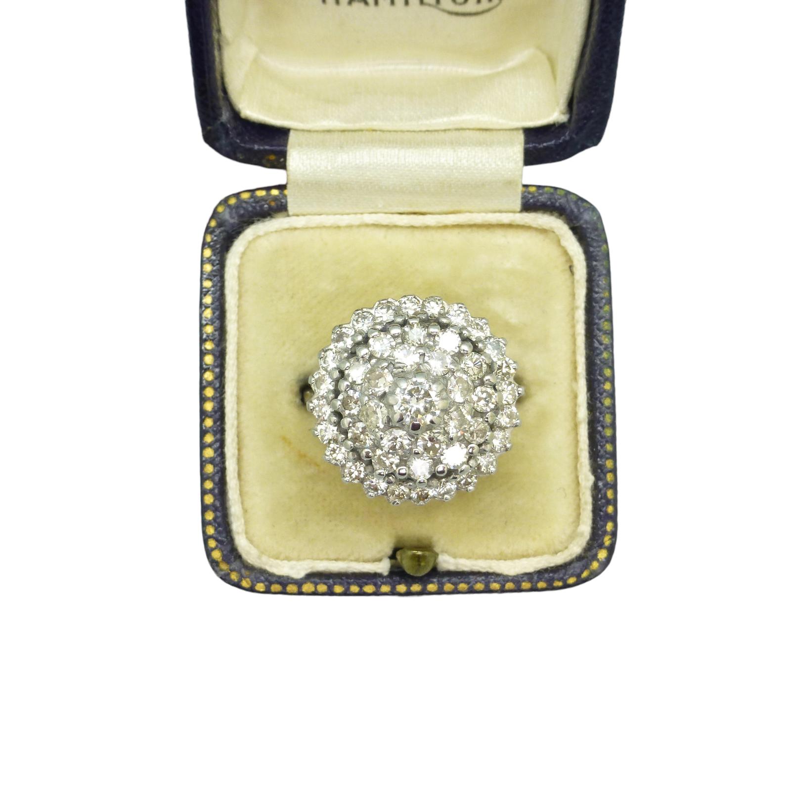 Vintage 18ct White Gold Diamond Halo Cluster Engagement Ring 1.95ct 1960s