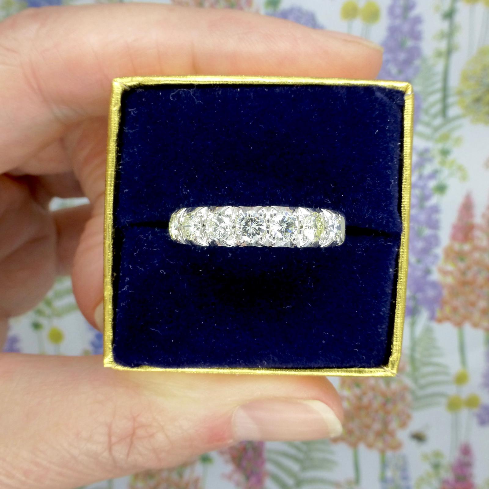 Vintage 18ct White Gold Seven Stone Diamond Half Eternity Wedding Band 0.85ct