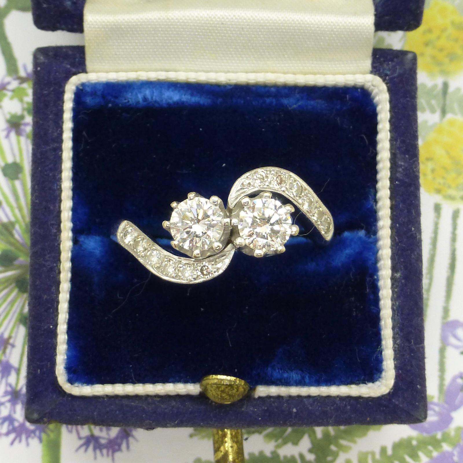 Vintage 18ct White Gold Two Stone Diamond Moi et Toi Ring 0.70ct