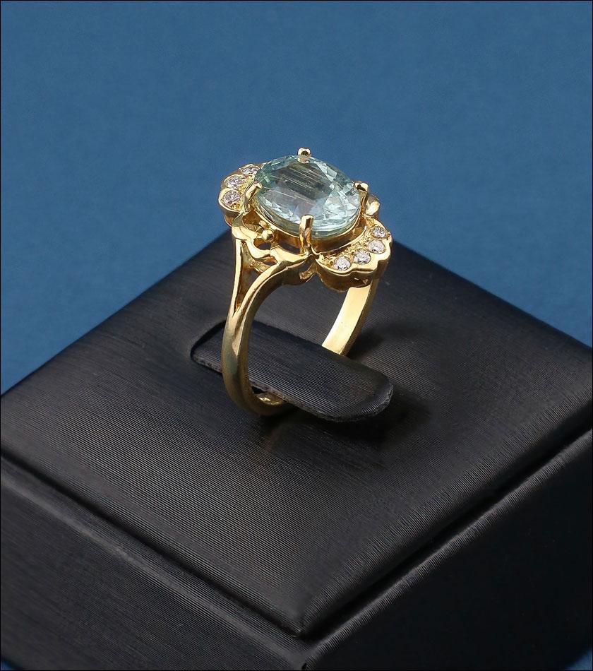 Vintage 18K Gold Ring with Oval Rutilated Quartz and 8 Natural Diamonds (1 of 8)