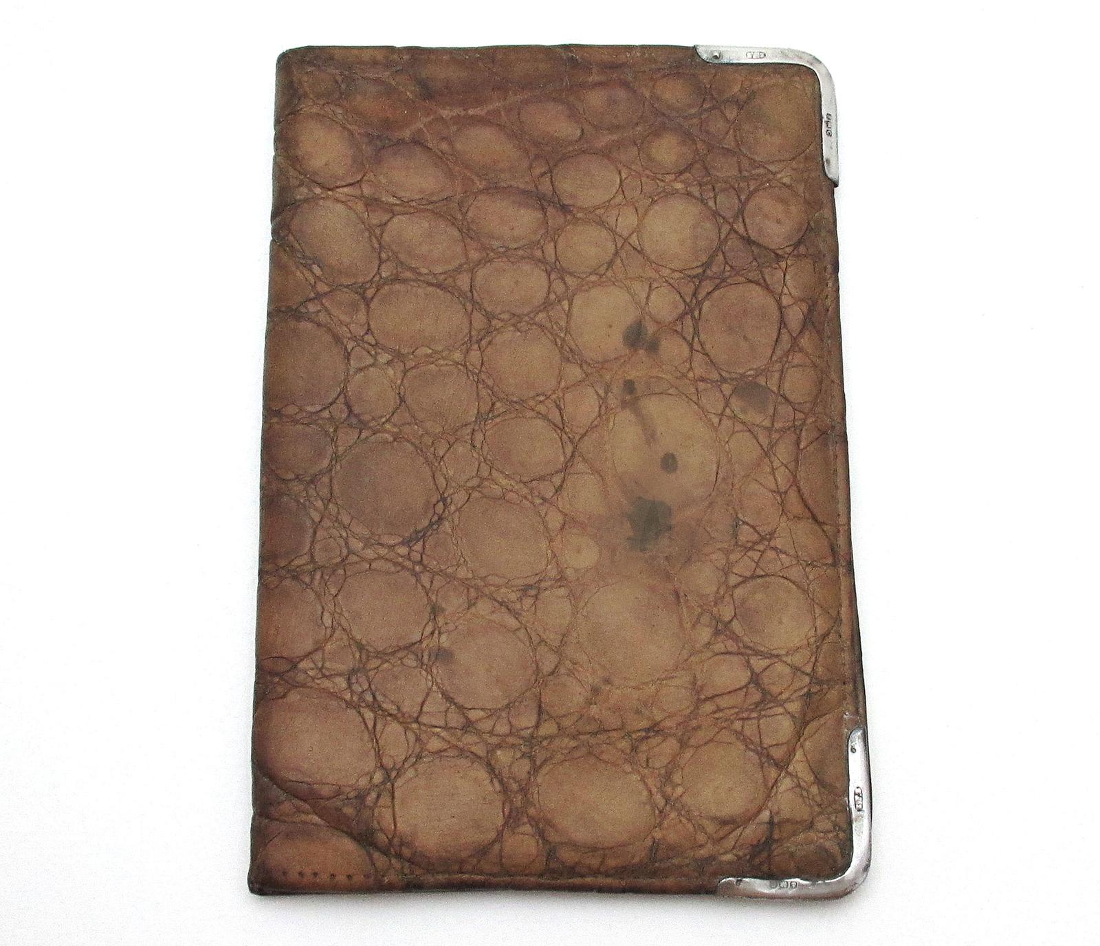 Vintage 1927 Solid Sterling Silver Mounted Crocodile Skin Leather Antique Wallet Purse Card Stamp Case
