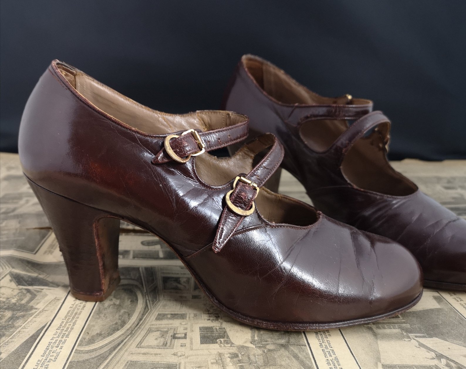 Vintage 1930s 2 Bar Shoes, Cuban Heel, Mary Jane's