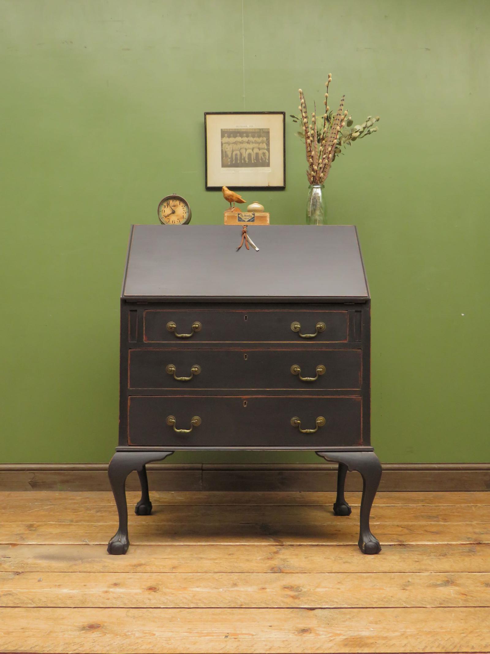 Vintage 1930s Black Writing Bureau Desk with Presentation Plaque, Lockable