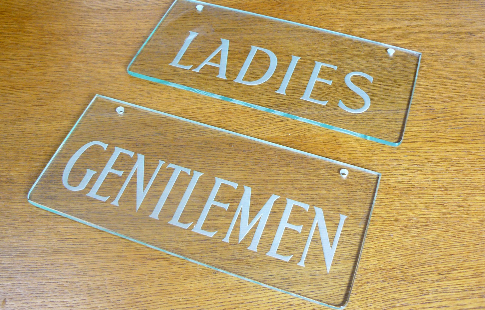 Vintage 1930s Glass Ladies & Gents Signs (1 of 1)