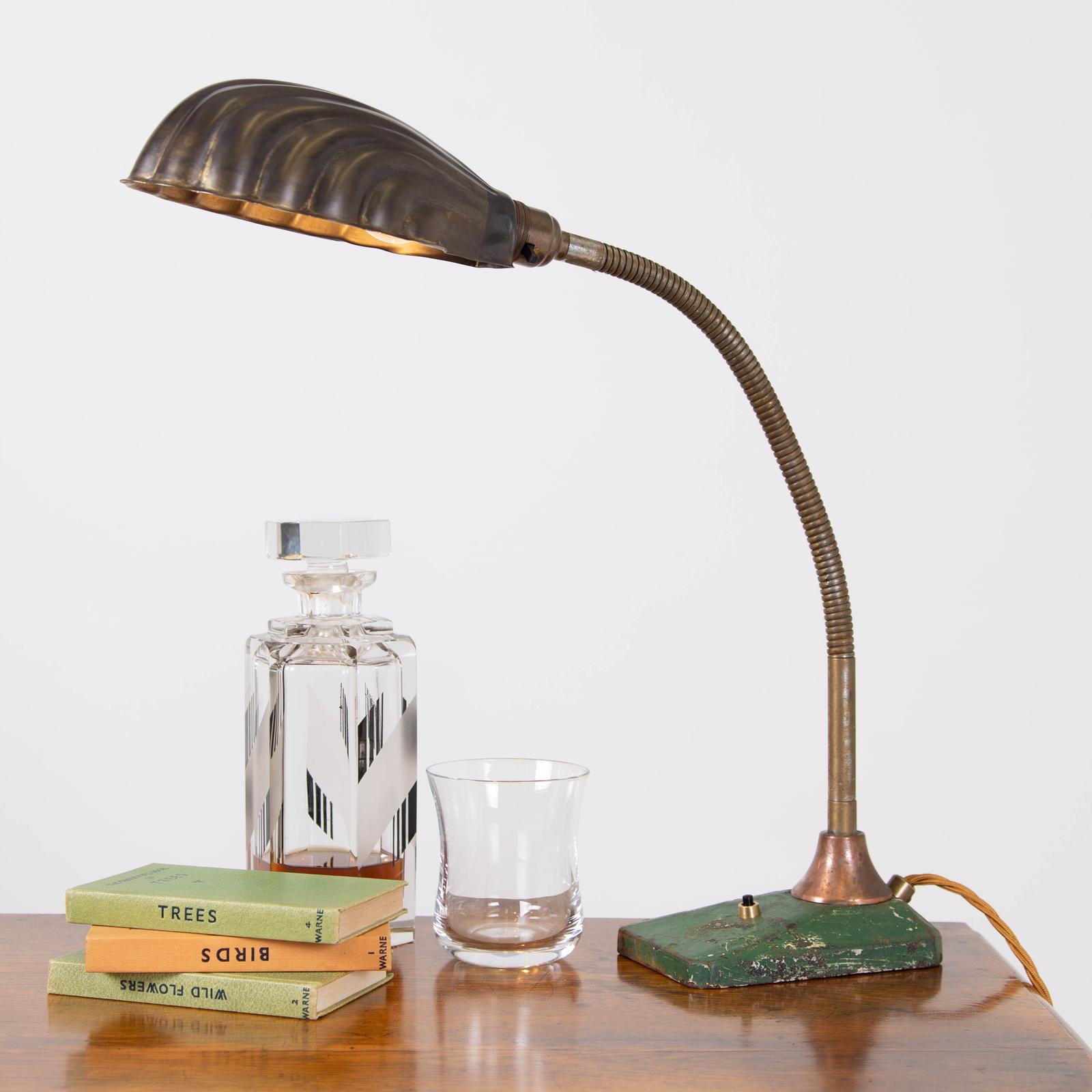 Vintage 1930s Goose Neck Desk Lamp with Shell Shade (1 of 9)