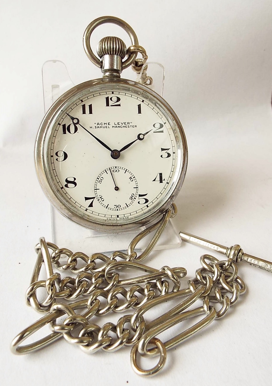 Vintage 1930s H Samuel Acme Lever Pocket Watch & Chain