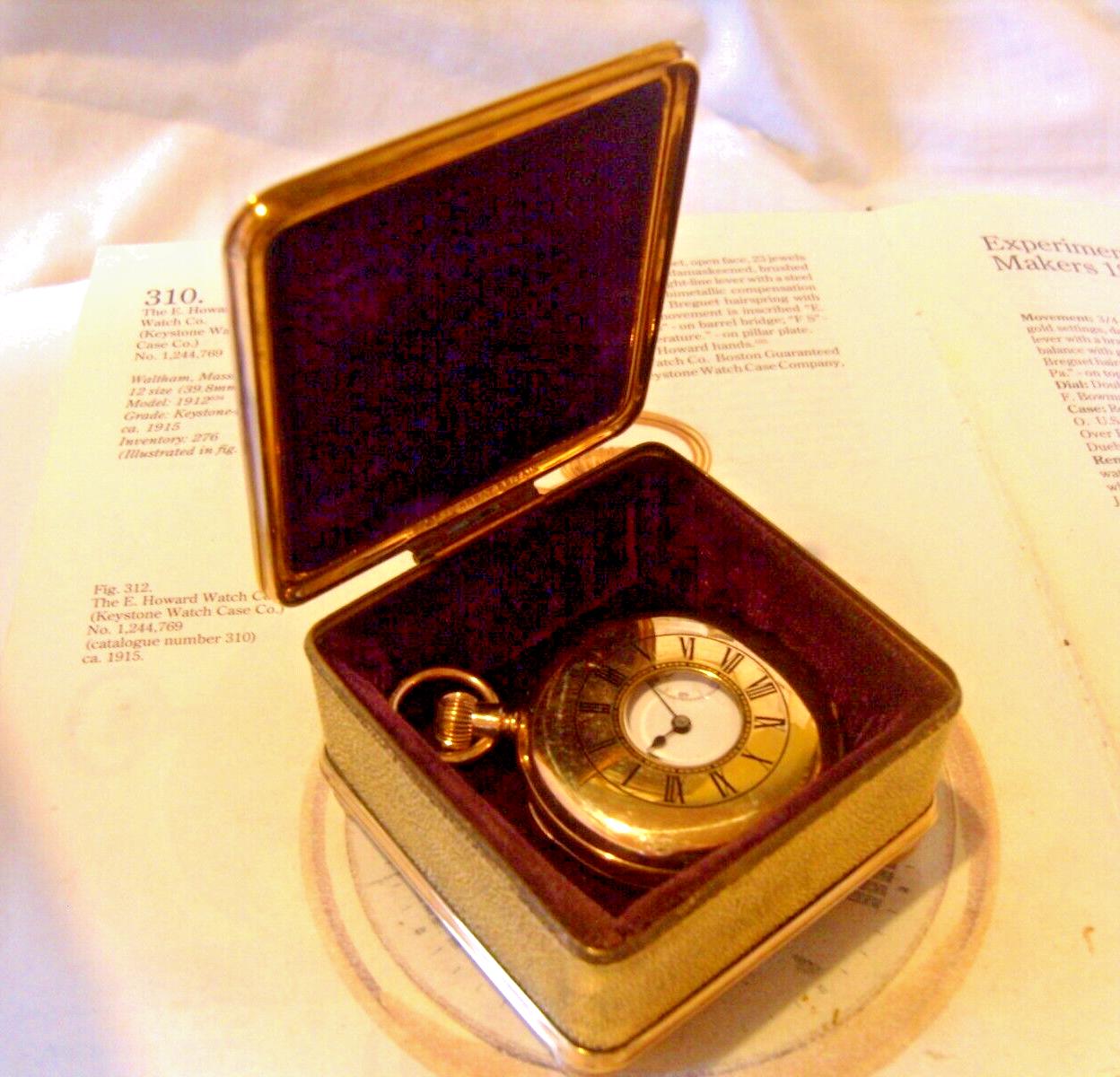 Vintage 1930s Pocket Watch Display Casket Box Golden Ormolu & Rich Damson Velvet