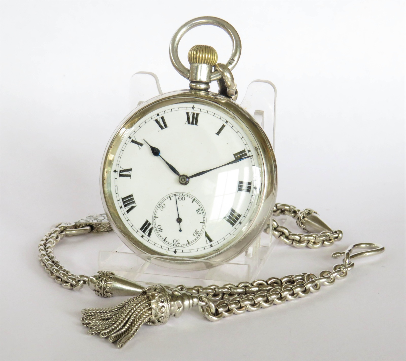 Vintage 1930s Silver Syren Pocket Watch & Chain