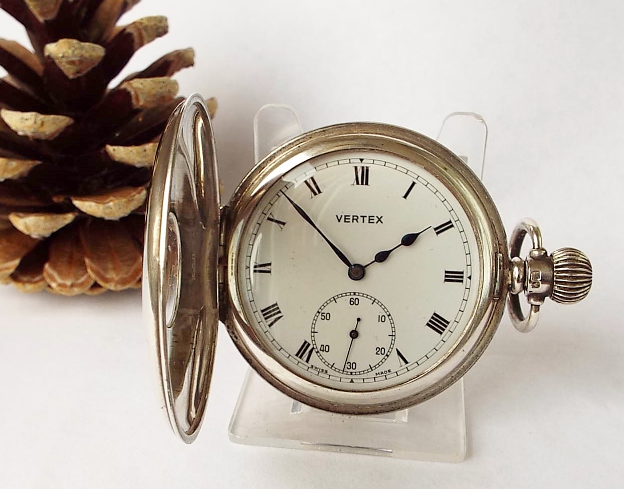 Vintage 1949 Silver Vertex Half Hunter Pocket Watch