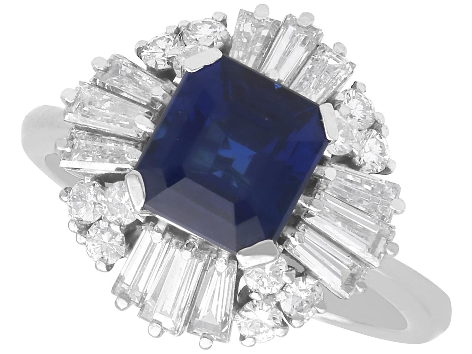 Vintage 1.94ct Basaltic Sapphire and 1.07ct Diamond Platinum Ballerina Ring Circa 1970